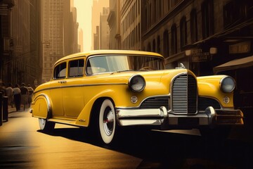 Concept art illustration of yellow retro car on the streets of new york city
