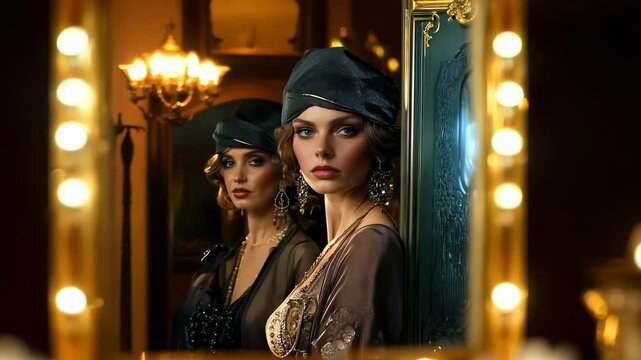 Art and allure: a flapper dressed woman channeling 1920s charm, wearing expressive clothing and classic headpieces, reflecting the creative and spirited culture of the era.