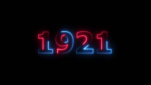 1921 neon line text. Abstract 1921 neon text animation, Glowing neon number text background 4k video animation . important year, important date 1921.