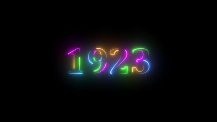 1923 neon line text. Abstract 1923 neon text animation ,For neon color Glowing neon number text background. 1923 title metal text on glowing text animation black background. glow old years animations