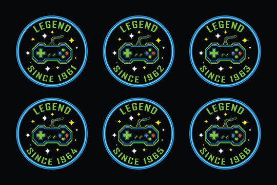 Vintage gaming badges with controller icons and legend since 1925-1930