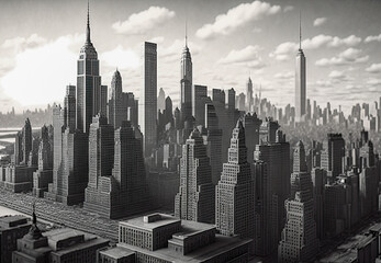 Historical street view of Prague City in 1930's. Czech Republic in Europe.