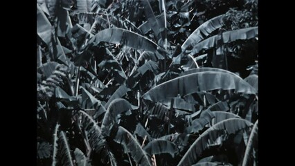 Jungle on Guadeloupe 1938 - Views from a jungle on the Island of Guadeloupe include wild bananas, in 1938.