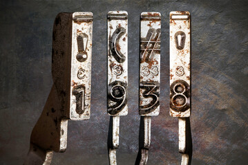 vintage old typewriter hammers with the date 1938 with vintage wallpaper background