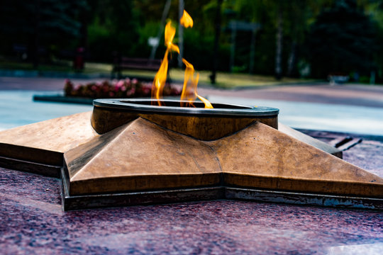Memorial - Eternal flame lit in honor of the memory of fallen soldiers in world war II