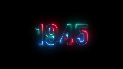 1945 neon line text. Abstract 1945 neon text animation ,For neon color Glowing neon number text background. 1945 title metal text on glowing text animation black background. glow old years animations