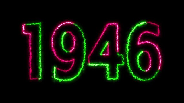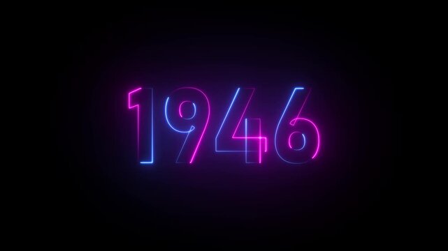 1946 neon line text. Abstract 1946 neon text animation ,For neon color Glowing neon number text background. 1946 title metal text on glowing text animation black background. glow old years animations