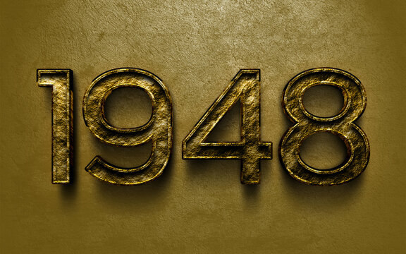 3D dark golden number design of 1948 on cracked golden background.