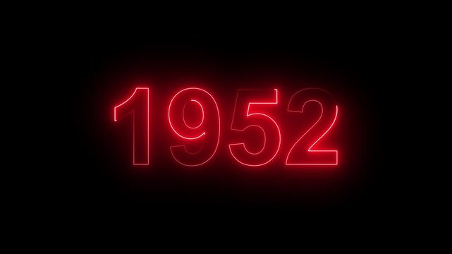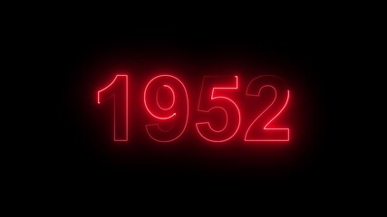 1952 Glowing Neon Line Text Animation, Powerful Abstract Neon Number Design in Stunning 4K Highlighting the Iconic and Important Year important date 1952.