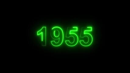 Neon green glowing number 1955 animation on black background, futuristic year text effect, historical date and time line concept, retro digital typography