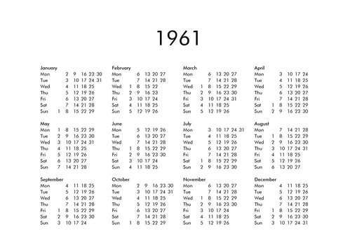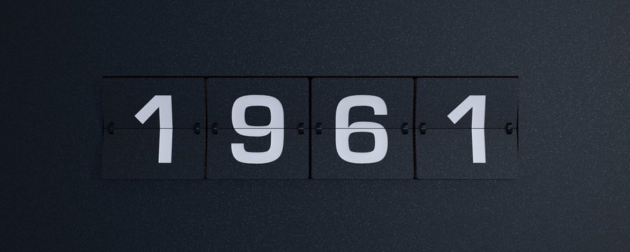 1961 text with screen effects of technological failures. Concept of counting years.  Abstract Futuristic Technology Background..