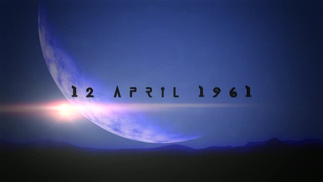 12 April 1961 with big planet and flash in galaxy, motion abstract futuristic, cosmos and sci-fi style background