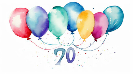 Watercolor 70th birthday clip art with 70 figures and balloons isolated on white background