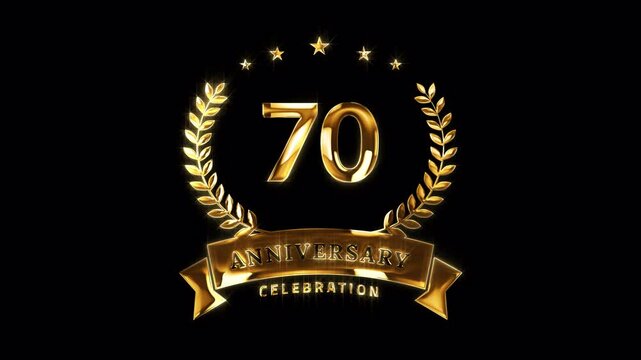 70th Anniversary Celebration. Golden 70 Years Anniversary Animation in Gold Color on the Transparent Background, Alpha Channel. Great for greetings, celebrations, events, and gifts.