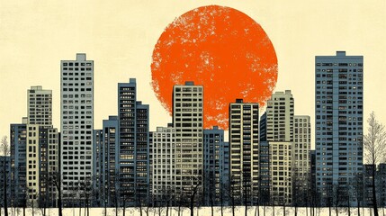 Minimalist 1970s-inspired abstract background with geometric retro patterns in warm earth tones