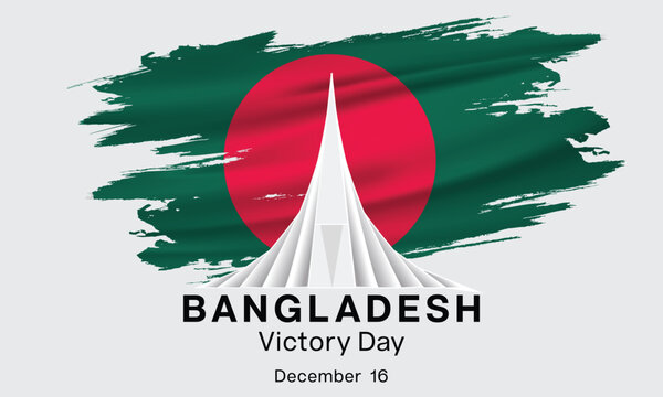 Bangladesh Victory Day design with Bangladesh's National Martyrs' Memorial over Bangladesh flag. Vector illustration