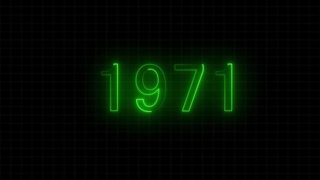 1971 text new year celebration. concept 1971 green color text animation on black background with green color light.