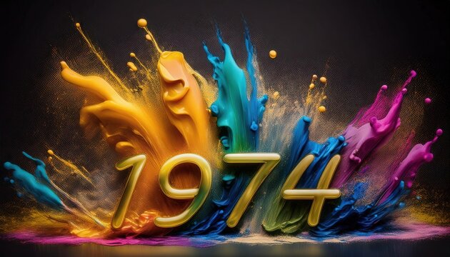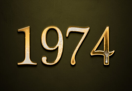 Old gold effect of 1974 number with 3D glossy style Mockup.