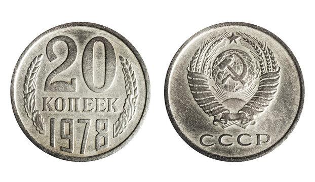 Isolated photo of 20 kopek ussr 1978 coin on white background.
