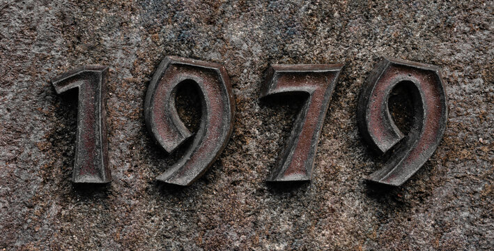 1979 text with screen effects of technological failures. Concept of counting years. Past year technology concept