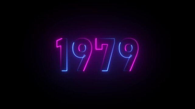 Neon red digital LED numbers display showing 1979 on black background, glowing electronic number animation, retro futuristic time and year concept, scoreboard and countdown style