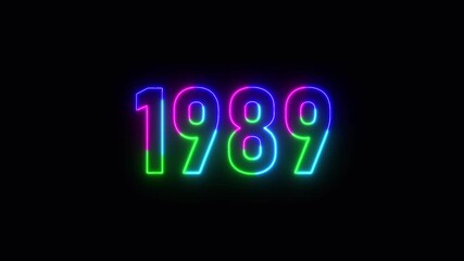 1989 neon line text. Abstract 1989 neon text animation ,For neon color Glowing neon number text background 4k video animation .Digital font against a dark background with neon line looping animation.