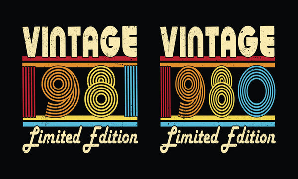 Retro Vintage 1981 and Vintage 1980 Design.Birthday gift Design.Man woman birthday gift.44 year old.