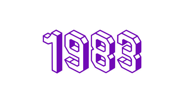 1983 neon line text. Abstract 1983 neon text animation, Glowing neon number text background 4k animation.