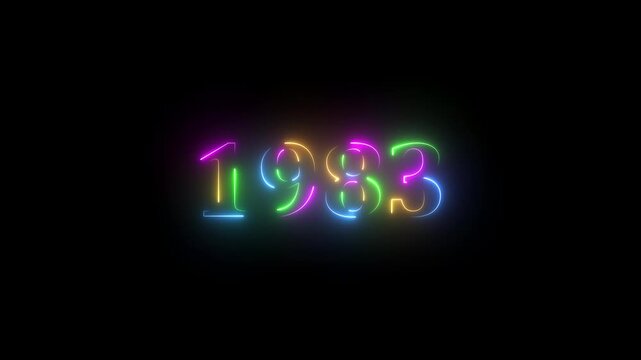 1983 neon line text. Abstract 1983 neon text animation ,For neon color Glowing neon number text background. 1983 title metal text on glowing text animation black background. glow old years animations