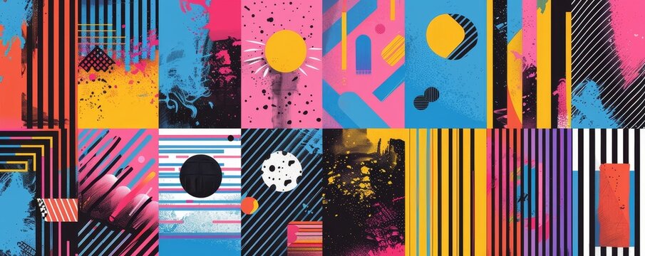 Set of retro futurism years, Vintage Striped prints. T-shirt Design in the 80s - 90s. Eighties style. Fashionable forms for merch and t-shirts. , Generative AI