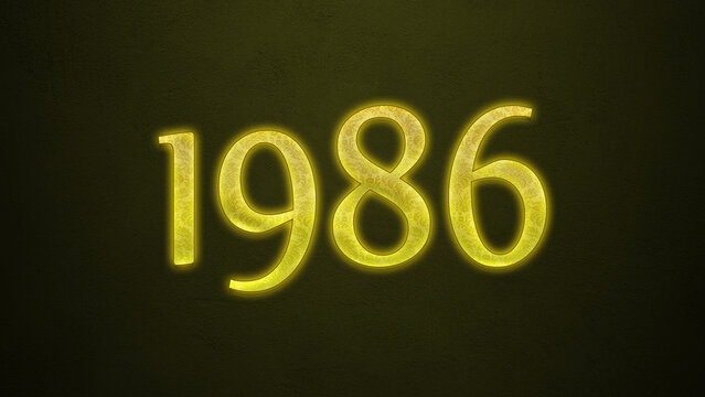 Glowing Neon Numbers 1986 in Pink and Blue on Black Background year