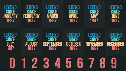 Legend since 1987 all month includes. Born in 1987 birthday design bundle for January to December