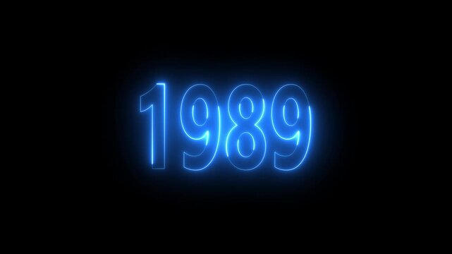 Single Color Blue Neon Numbers 1989 Glowing on Black year