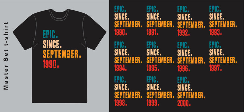 Epic Since September 1990-2000 vector design vintage letters retro colors. Cool T-shirt gift.