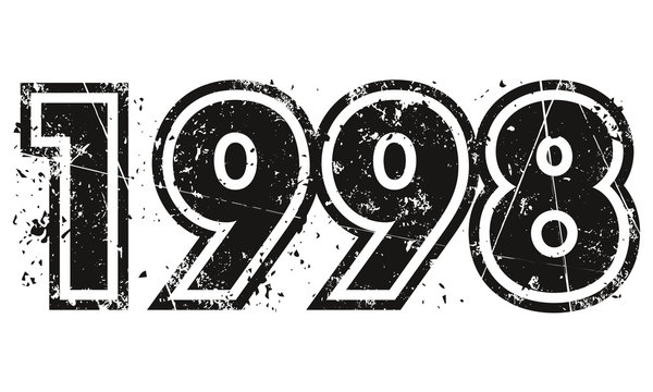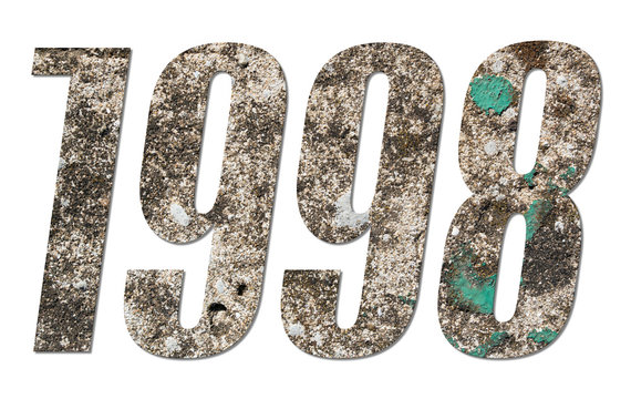 Year 1998 with old concrete wall on white background