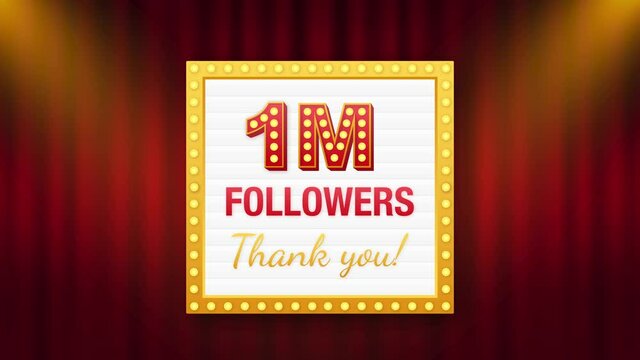 1m or 1000000 followers thank you. One million. Golden numbers with ribbon. Social Network friends, followers, Web users. Subscribers, followers or likes celebration.