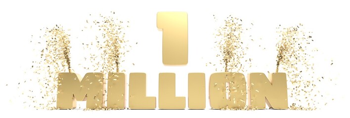 3D render of golden number one million isolated on white background, Million Views, One million followers concept