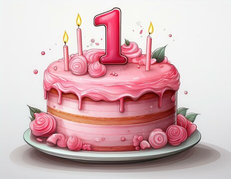 Hbd celebration 1st happy birthday cake with balloons in festive setting