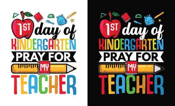 1st Day Of 1st Grade Pray For My Teacher, Funny first day of kindergarten shirt design