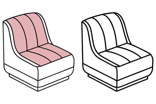Two simple chairs present one in color and another in black and white line
