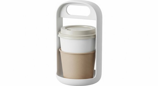 Two coffee cups in a cardboard carrier on a white background. Concept of takeaway coffee and convenience. Useful for coffee shops, cafes, and food delivery services. Contains copy space.