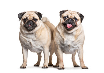 Friendly dogs and cats peek over web banner. AI Generative creates cute pet portrait with isolated white background.
