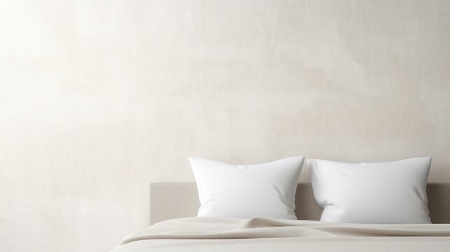 two white pillows sitting on top of a bed next to a white pillow on top of a white headboard.