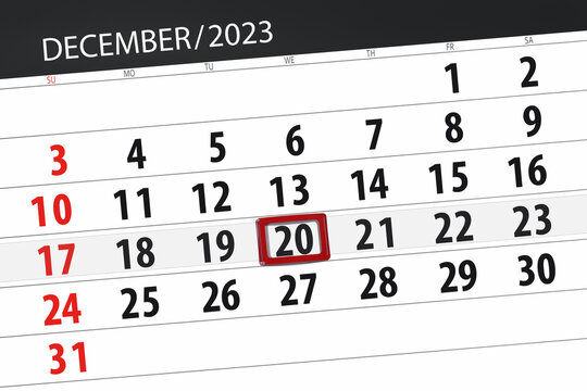 Calendar 2023, deadline, day, month, page, organizer, date, December, wednesday, number 20