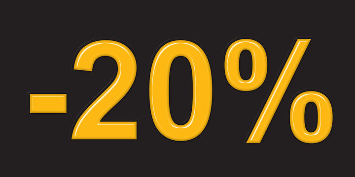 Glossy orange and white 3d numbers show twenty percent value. Realistic shiny digit discount offers bright background. Shopping promotion for retail sale.