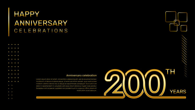 200th anniversary logo design in gold color isolated on a red background, logo vector illustration