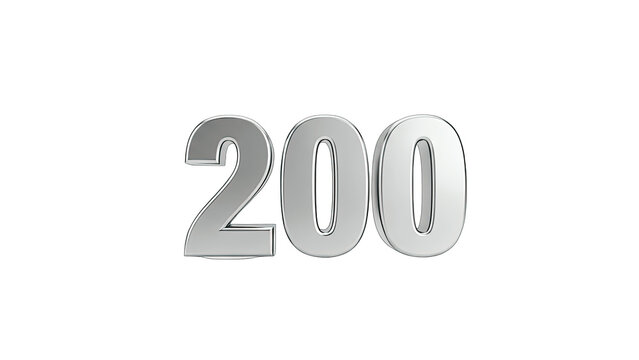 Silver birthday / anniversary balloon, number 200, white background with confetti