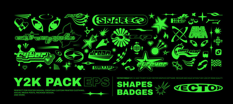 Y2k backgrounds. Waves, swirl, twirl pattern. Vector posters with daisy, flower, heart, lines. Twisted and distorted texture in trendy retro 2000s style. Lilac, pink and green color.