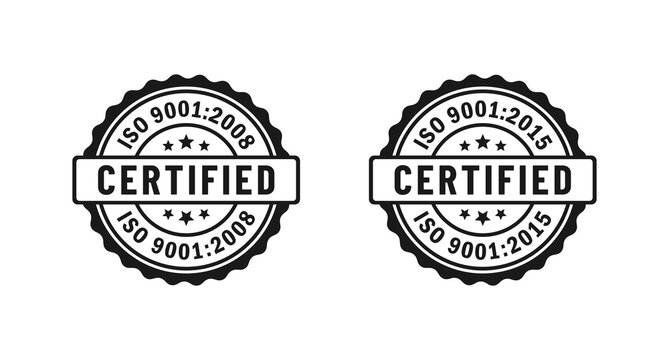 ISO 9001:2015 label or ISO 9001:2008 stamp vector on white background. ISO 9001:2015 Seal vector. The International Organization for Standardization. Best certified ISO 9001:2008.