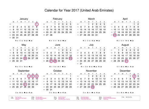 Calendar of year 2017 with public holidays and bank holidays for United Arab Emirates